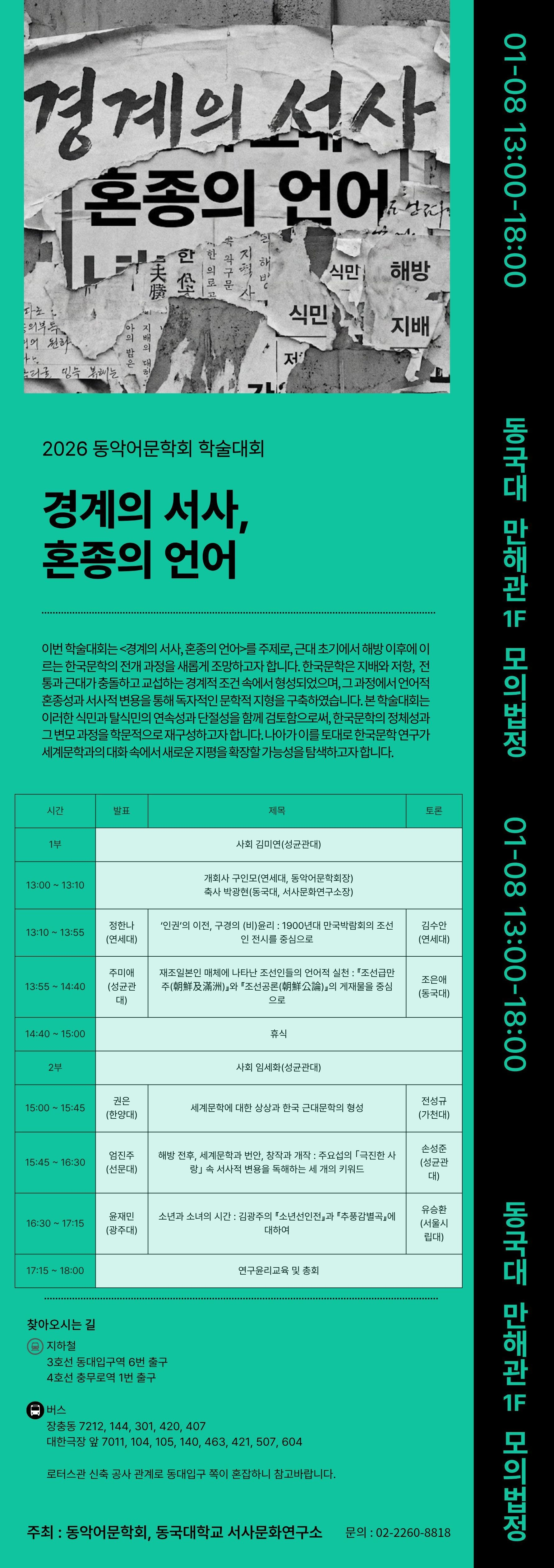 <동악어문학> 2026년 겨울 학술대회 "경계의 서사, 혼종의 언어" (1/8 목)