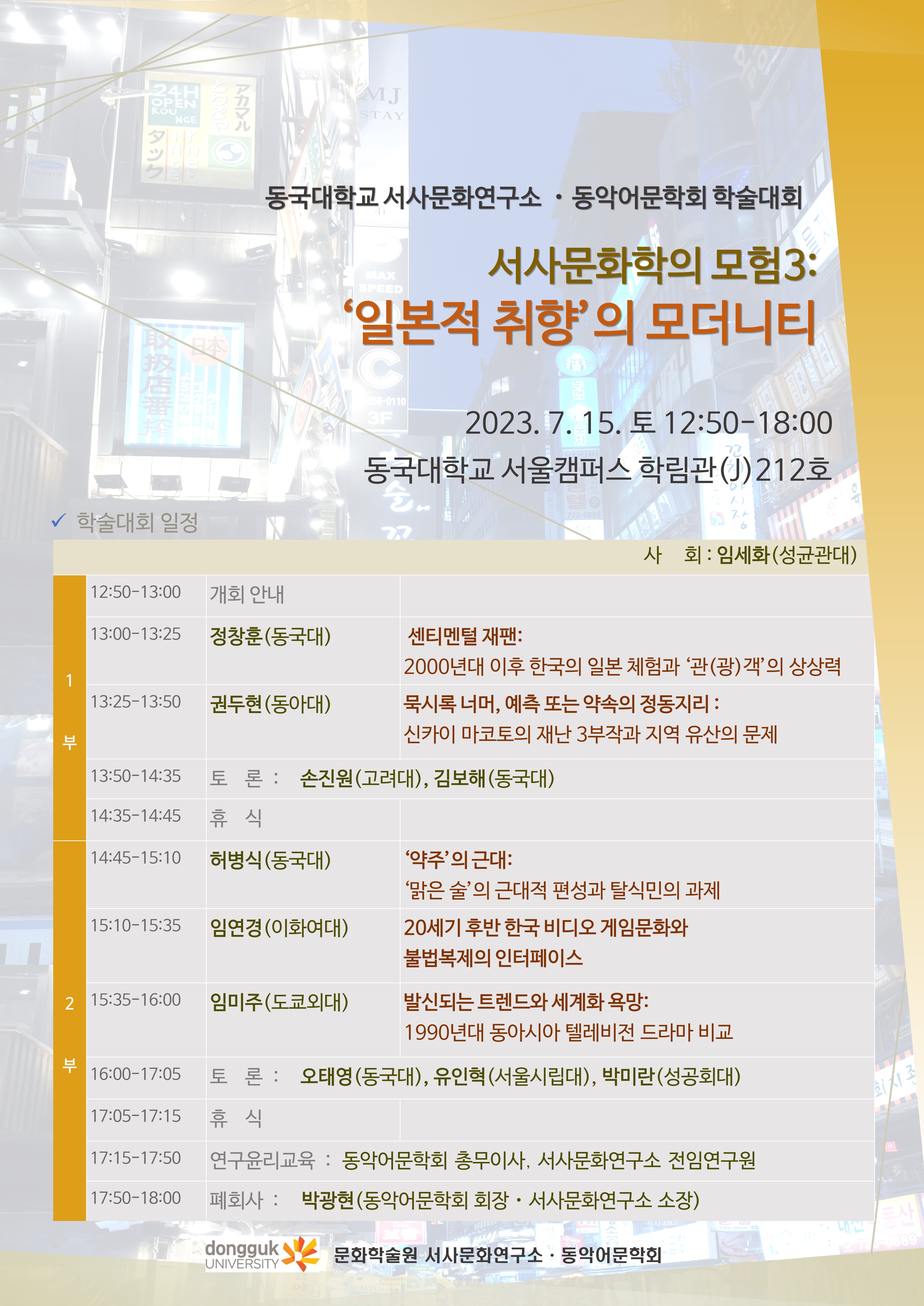 동악어문학회 ‧ 동국대 서사문화연구소 학술대회(7/15 토, 오후 1시~) - "서사문화학의 모험 3: '일본적 취향'의 모더니티"